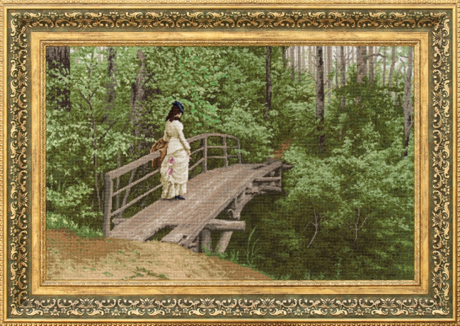 Набор для вышивания создан по мотивам картины «Вера Алексеевна Репина на мостике в Абрамцево» кисти Ильи Ефимовича Репина.